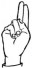 На ћирилици написано ВОЈИСЛАВ ТУБОЊИЋ састоји се из 15 слова [?]. Исписано ћириличном једноручном азбуком за глувонеме: